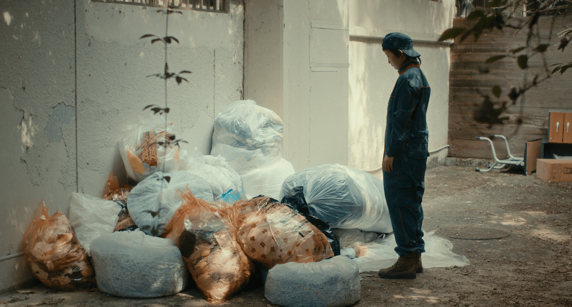 휴일 아침, 한 청소부가 혼자 일을 하러 나온다. 청소부는 건물 뒤편 쓰레기장에서 쓰러진 청년과 정체불명의 백수를 마주친다. 세 사람은 서로의 이름도 모른 채, 백수가 잃어버린 쓰레기 봉투를 함께 찾기 시작한다.