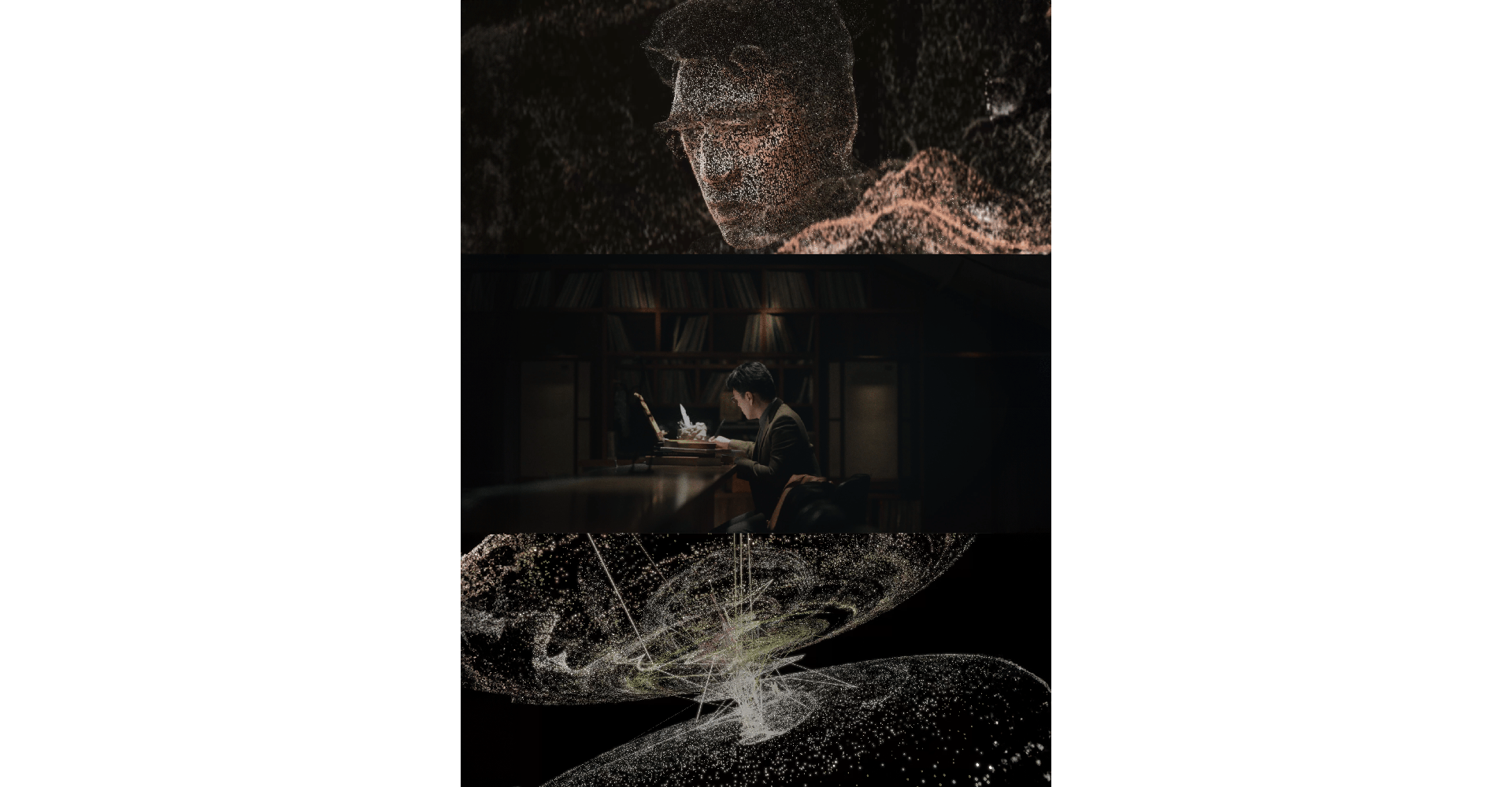 은퇴한 수학 천재는 디지털 만화의 창조자로 변신했다. 그는 자신의 펜 끝에서 시간과 차원이 유동하는 가상 세계의 신이 되었다. 그의 이야기 속에는 생명력을 얻은 세 캐릭터인 알파(α), 베타(β), 감마(γ)가 존재한다. 이들은 수학자의 가상 자식들처럼 복잡한 숫자의 얽힘 속에 머문다. 어느 날, 수학자는 영원한 잠에 들어 다시는 깨어나지 못하게 된다. 남겨진 캐릭터들은 서로의 존재를 감지하기 시작하고, 현실로 나가는 출구를 찾아 이 세계의 비밀을 해독하려 시도한다. 손에 잡힐 듯한 탐색 끝에 마침내 진실의 끝에 닿았다고 생각한 순간, 그들은 모든 것이 허공 위의 성이었음을 깨닫는다. 그들의 '진실'은 이미 오래전부터 무한 루프의 코드 속에 새겨져 있었다. 창조주였던 수학자는 결국 자연으로 돌아가 한 그루의 강인한 고목이 된다. 그는 디지털 우주를 수호하며 숫자의 미궁 속을 헤매는 아이들을 묵묵히 지켜본다. 모든 숫자와 공식은 진실을 향한 단서가 되지만, 어쩌면 진실은 그들의 목적지가 아닐지도 모른다.